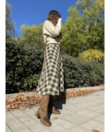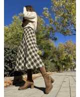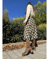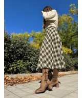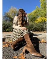 Bota alta de tejido elástico marrón con costura central, cremallera lateral y suela de goma con tacón de 6cm y plataforma de 1cm