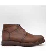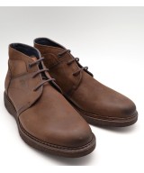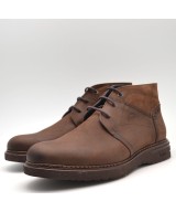 Botín de nobuck marrón chocolate con cordones y suela de goma marrón