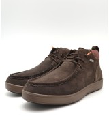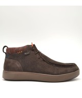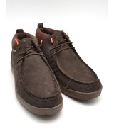 Botín waterproof estilo wallabee de ante marrón chocolate, cordones elásticos, plantilla ligeramente acolchada y suela de goma
