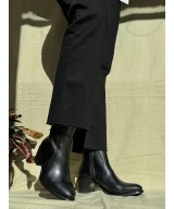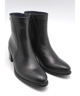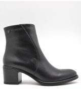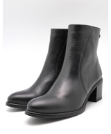 Botín de piel suave negra, cierra con cremallera lateral y suela de goma con tacón ancho de 6cm