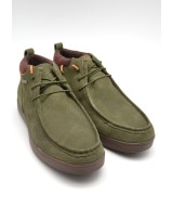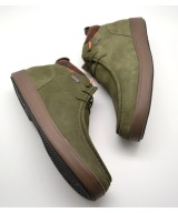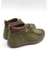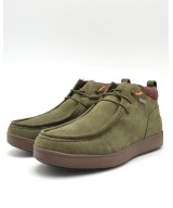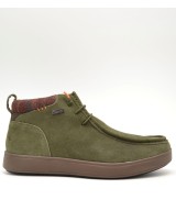 Botín waterproof estilo wallabee de ante kaki, cordones elásticos, plantilla ligeramente acolchada y suela de goma