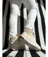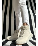Botín waterproof color hielo forrado de pelito con cordones, cremallera lateral, plantilla memory foam y suela de goma