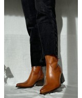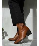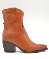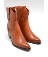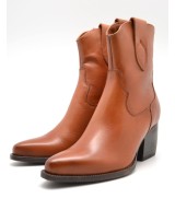 Botín de piel color cuero estilo cowboy con cremallera lateral y suela de goma con tacón de 6,5cm