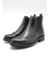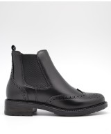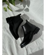 Botín de piel negra estilo Chelsea con elásticos a ambos lados, picados en la pala y la parte trasera y suela de goma con tacón de 3cm