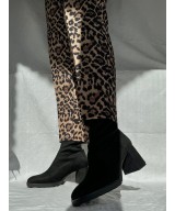 Botín de tejido elástico negro, costura central, suela de goma con plataforma de 1,5cm y tacón ancho forrado de 7cm