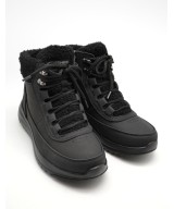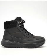 Botín waterproof negro forrado de pelito con cordones, cremallera lateral, plantilla memory foam y suela de goma