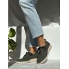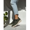 Zapato extra ligero verde de tejido extra suave calado, cordones, plantilla acolchada extraíble y suela de goma con cuña de 4cm y plataforma de 1,5cm