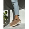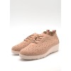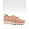 Zapato extra ligero tostado de tejido extra suave calado, cordones, plantilla acolchada extraíble y suela de goma con cuña de 4cm y plataforma de 1,5cm