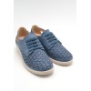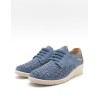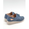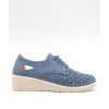 Zapato azul con calados, cordones elásticos, plantilla extraíble y suela de goma con cuña de 4,5cm y plataforma de 1,5cm