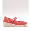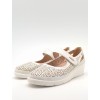 Zapato tipo mercedita perlado con calados, tira con cierre de velcro, plantilla extraíble y suela de goma con cuña de 4,5cm y plataforma de 1,5cm