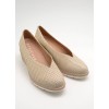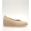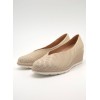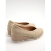 Zapato de piel suave beige con calados, escote en V, plantilla acolchada y extraíble, suela de goma con cuña de 5cm y plataforma de 1,5cm