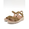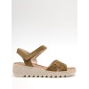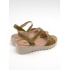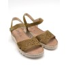 Sandalia de piel kaki con calados en la pala, ajuste con velcro, plantilla acolchada, suela ligera de goma con cuña de 4cm y plataforma de 2cm