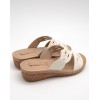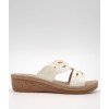 Sandalia tipo zueco beis con strass, plantilla acolchada y suela ligera de goma con cuña de 4cm y plataforma de 1cm