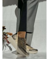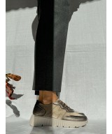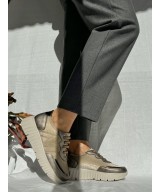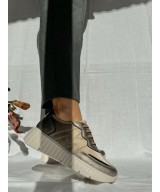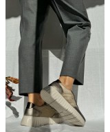 Deportiva extra ligera taupe con detalles plomo, cordones elásticos, plantilla acolchada extraíble y suela de goma con cuña de 5cm y plataforma de 3cm