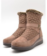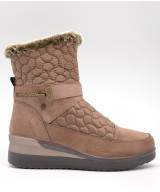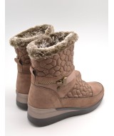 Botín taupe guateado con cremallera lateral, detalle de pelo en la parte alta de la caña, plantila acolchada extraíble y suela de goma con cuña de 5cm y plataforma de 2cm