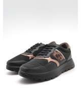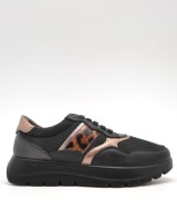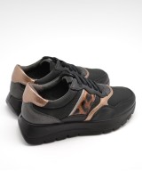 Deportiva extra ligera con dettales plata, dorador y leopardo, cordones elásticos, plantilla acolchada extraíble y suela de goma con cuña de 4cm y plataforma de 2,5cm