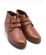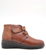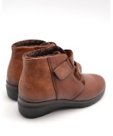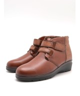 Botín de piel extra suave marrón, ajuste con elásticos y velcro, plantilla acolchada extraíble y suela de goma antideslizante con cuña de 4,5cm y plataforma de 1,5cm