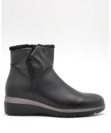 Botín de piel extra suave negra, cremallera lateral, plantilla acolchada extraíble y suela de goma antideslizante con cuña de 4,5cm y plataforma de 1,5cm