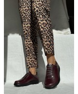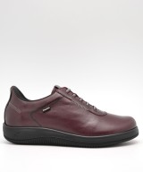 Zapato de piel granate con cordones elásticos, plantilla acolchada extraíble, sistema "manos libres" para calzarte sin agacharte y suela de goma