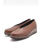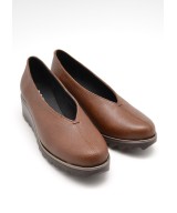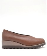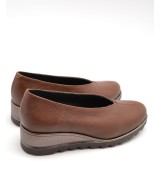 Mocasín de piel grabada marrón con escote en V, plantilla acolchada extraíble y suela de goma con cuña de 4,5cm y plataforma de 1,5cm