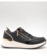 Zapato deportivo negro con cordones, cemallera lateral, plantilla memory foam, detalles em dorado y duela de goma con cuña de 4cm y plataforma de 2cm