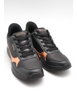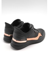 Zapato deportivo negro con cordones elásticos, sistema Slip-ins, plantilla memory foam, detalle en oro rosa y suela de goma negra con cuña de 4,5cm y plataforma de 2cm