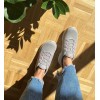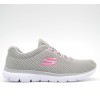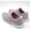 Deportiva básica gris claro con detalles en fucsia, cordones elásticos y plantilla memory foam