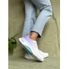 Deportiva blanca con degradado a lila, cordones elásticos, plantilla memory foam con tecnología ArchFit y suela de goma. Lavables en la lavadora