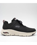 Deportiva negra con cordones, plantilla memory foam con sistema ArchFit que aporta amortiguación extra al arco plantar y suela de goma. Lavables en la lavadora