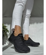 deportiva de tejido jaspeado negro con cordones elásticos, plantilla memory foam, sistema Slip-ins y suela de goma