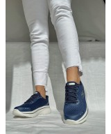 Deportiva azul marino con cordones elásticos, plantilla memory foam con tecnología ArchFit, sistema Slip-ins y suela de goma