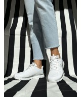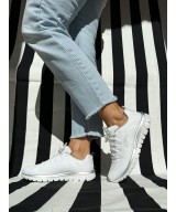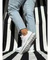 Deportiva blanca con detalles plata con cordones, plantilla memory foam y suela de goma. Lavables en la lavadora