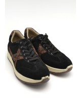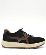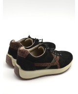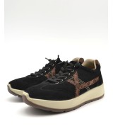 Deportiva de ante negra con detalles en leopardo, cordones elásticos, plantilla extraíble y suela de goma con plataforma de 3cm