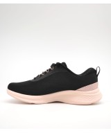 Deportiva negra con cordones, plantilla memory foam, detalle de brillo en el talón y suela de goma. Veganas