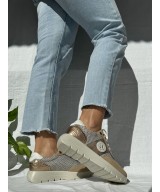 Zapato deportivo tostado con tejido tipo rafia, cordones elásticos, plantilla acolchada extraíble y suela de goma ligera