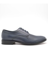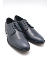 Zapato de piel azul con cordones, suela de goma con zona central antideslizante y tacón