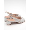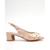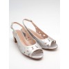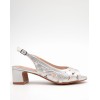 Zapato plata con formas de flores, destalonado con punta abierta, ajuste con hebilla y tacón ancho forrado de 5cm