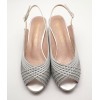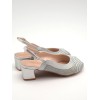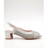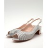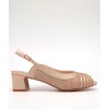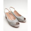 Sandalia plata de ancho especial, tiras finas cruzadas y fondo en tejido brillante rojizo, hebilla ajustable en el lateral y tacón ancho forrado de 5cm
