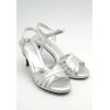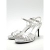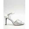Sandalia plata con tiras finas en la pala, ajuste de tira con hebilla al tobillo, tacón forrado de 9cm y plataforma de 2cm
