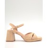 Sandalia de rafia con tiras cruzadas en la pala, ajuste de tira con hebilla al tobillo, plantilla acolchada, tacón ancho forrado de 7cm y plataforma de 2cm
