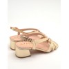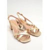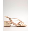Sandalia dorada con tiras anchas cruzadas, ajuste con hebilla y tacón ancho forrado de 5cm