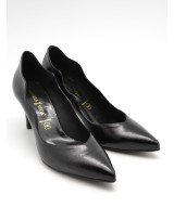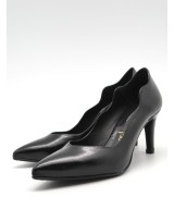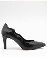 Zapato acharolado negro con escote en V, lateral con ondas y suela de goma con tacón forrado de 7cm