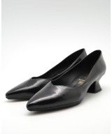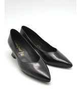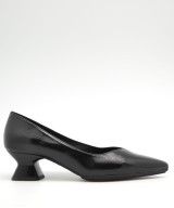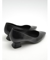 Zapato acharolado negro con escote en V, punta fina y suela de goma con tacón ancho de 5cm