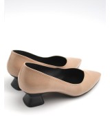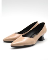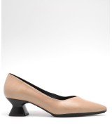 Zapato beige con escote en V, punta fina y suela de goma con tacón ancho de 5cm
