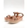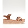 Sandalia de piel con tiras cilíndricas en tonos marrones, ajuste con hebilla al tobillo, plantilla acolchada y suela ligera con efecto esparto con cuña de 5cm y plataforma 3cm