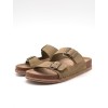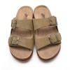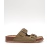 Sandalia de nobuck kaki con dos tiras anchas con hebilla, plantilla acolchada y suela de corcho