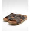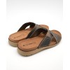 Sandalia con dos tiras cruzadas en el empeine en dos tonos de negro, plantilla acolchada y suela de goma