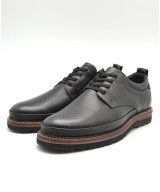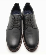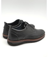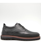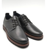 Zapato de piel negra con cordones, plantilla acolchada extraíble y suela de goma con detalle de cosido y rayas tricolor