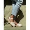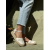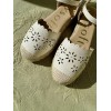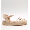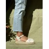 Esparteña blanca con calados en forma de flor, puntera forrada, cierre de tira con hebilla, plantilla acolchaday suela de esparto con cuña de 4cm y plataforma de 2cm