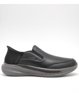 Zapato negro sin cordones con elásticos en los laterales de la pala, plantilla memory foam, sistema Slip-ins y suela de goma ligera